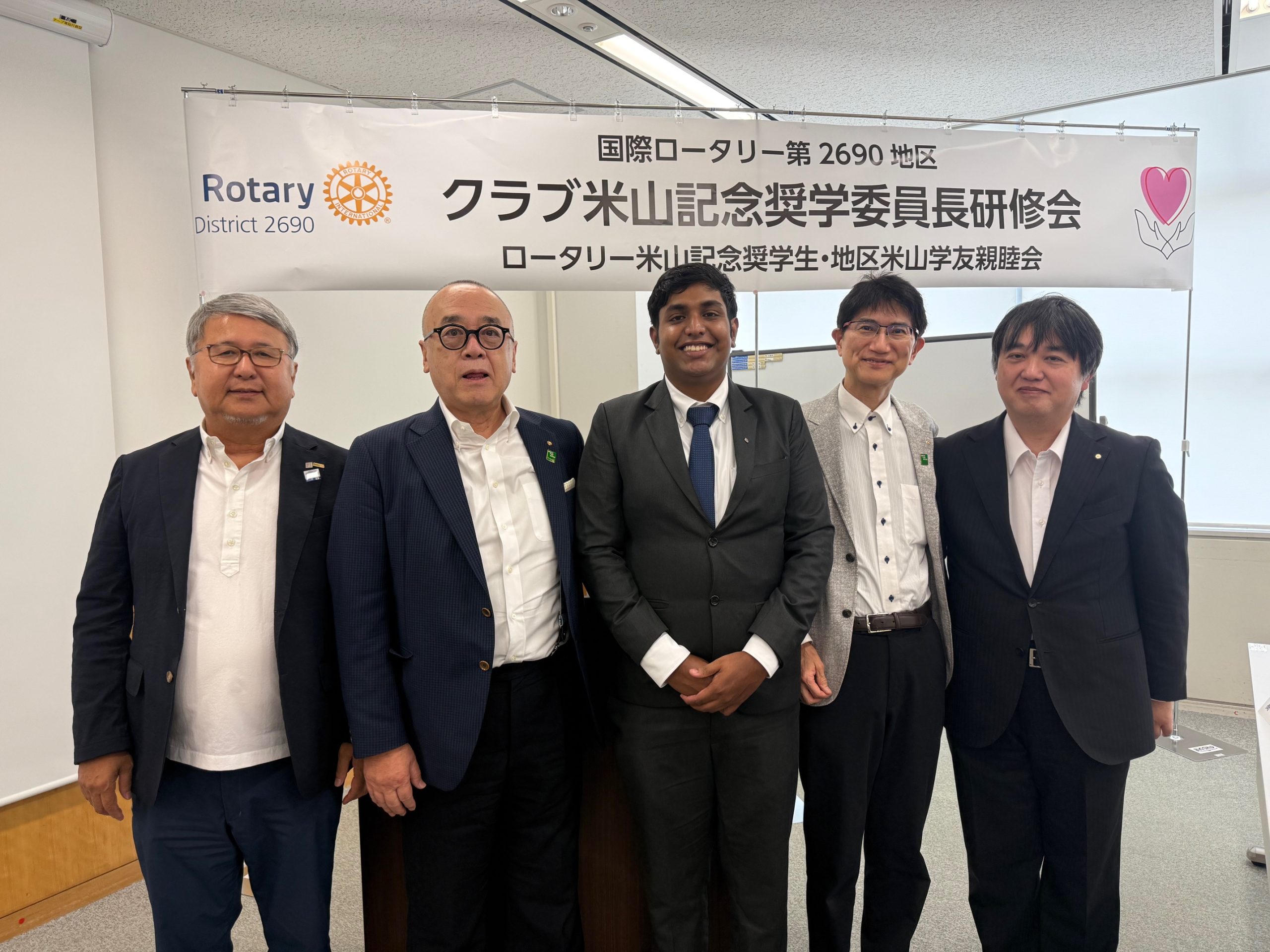 9月21日(日)、午後1時30分より、米子コンベンションセンターで行われたクラブ米山記念奨学委員長研修会及びロータリー米山記念奨学生・地区米山学友親睦会に、髙山眞司地区ガバナーノミニー、大西直規次々期地区代表幹事、冨岡正機次々期地区筆頭庶務幹事、ダサナーヤカ ムディヤンセー ラーラハーミラーゲー、ギートゥマール チャンドーパマ バンダーラ ダサナーヤカさんとともに参加しました。