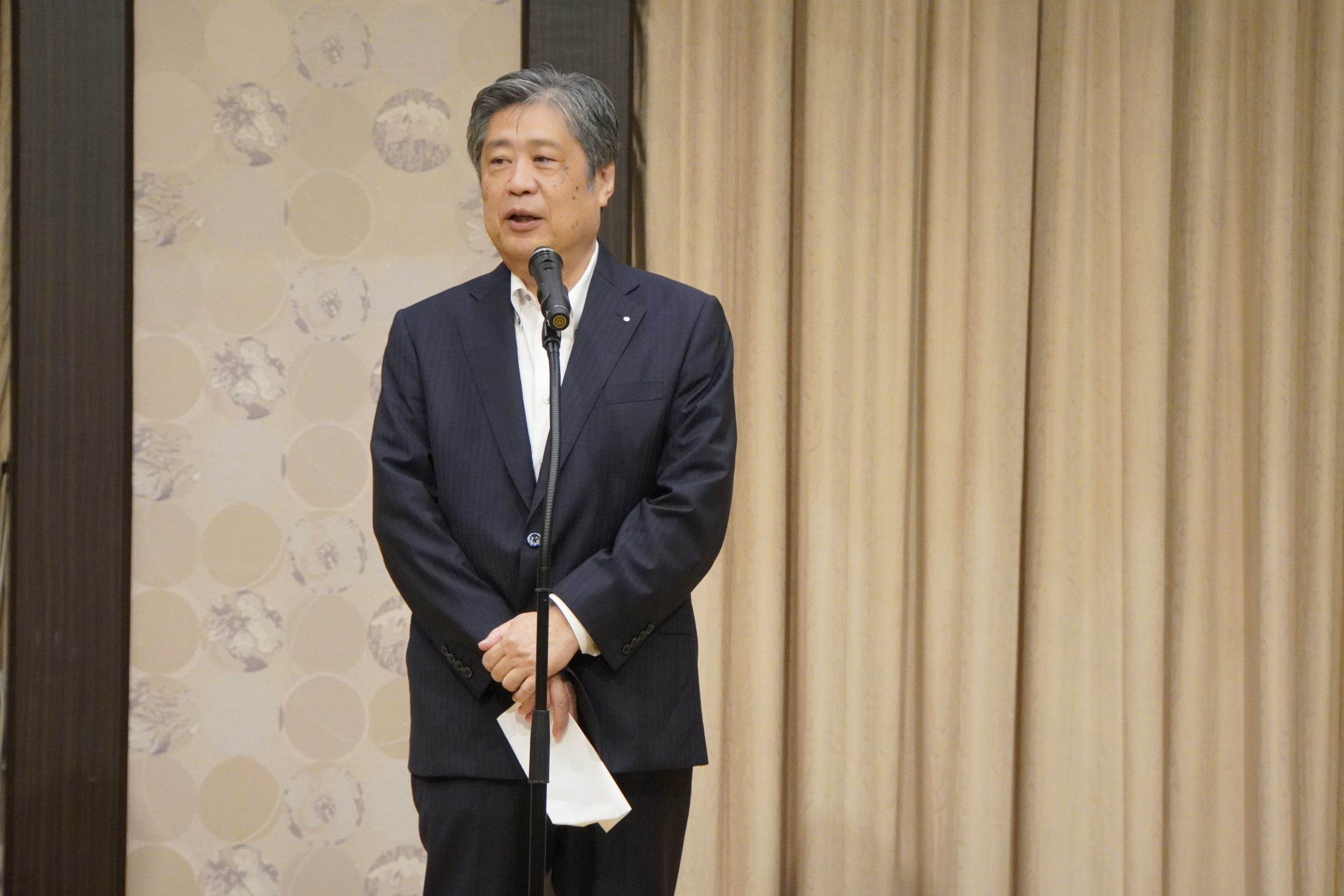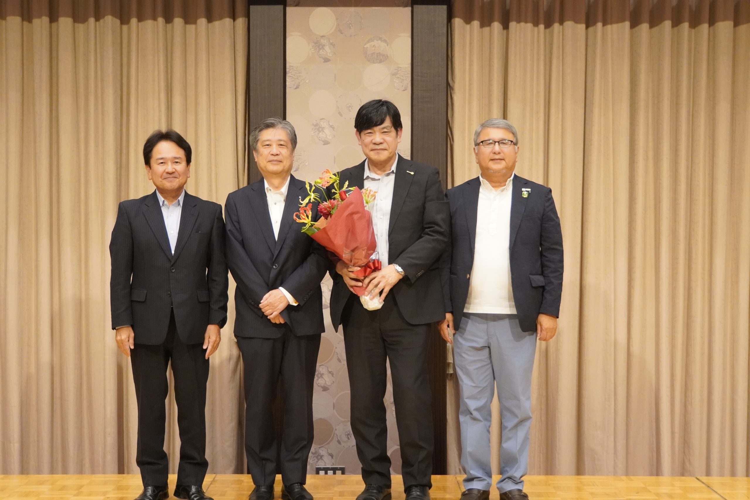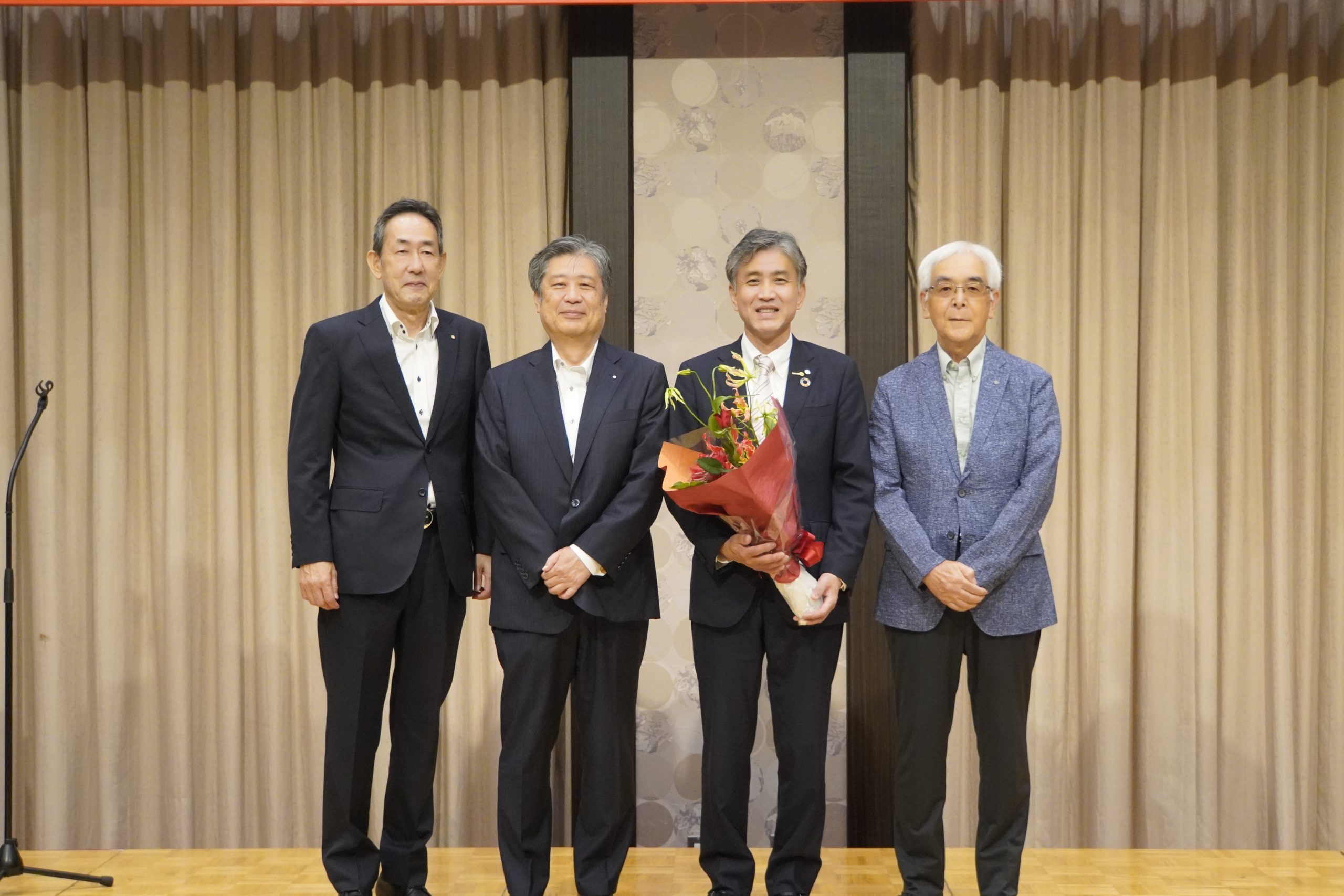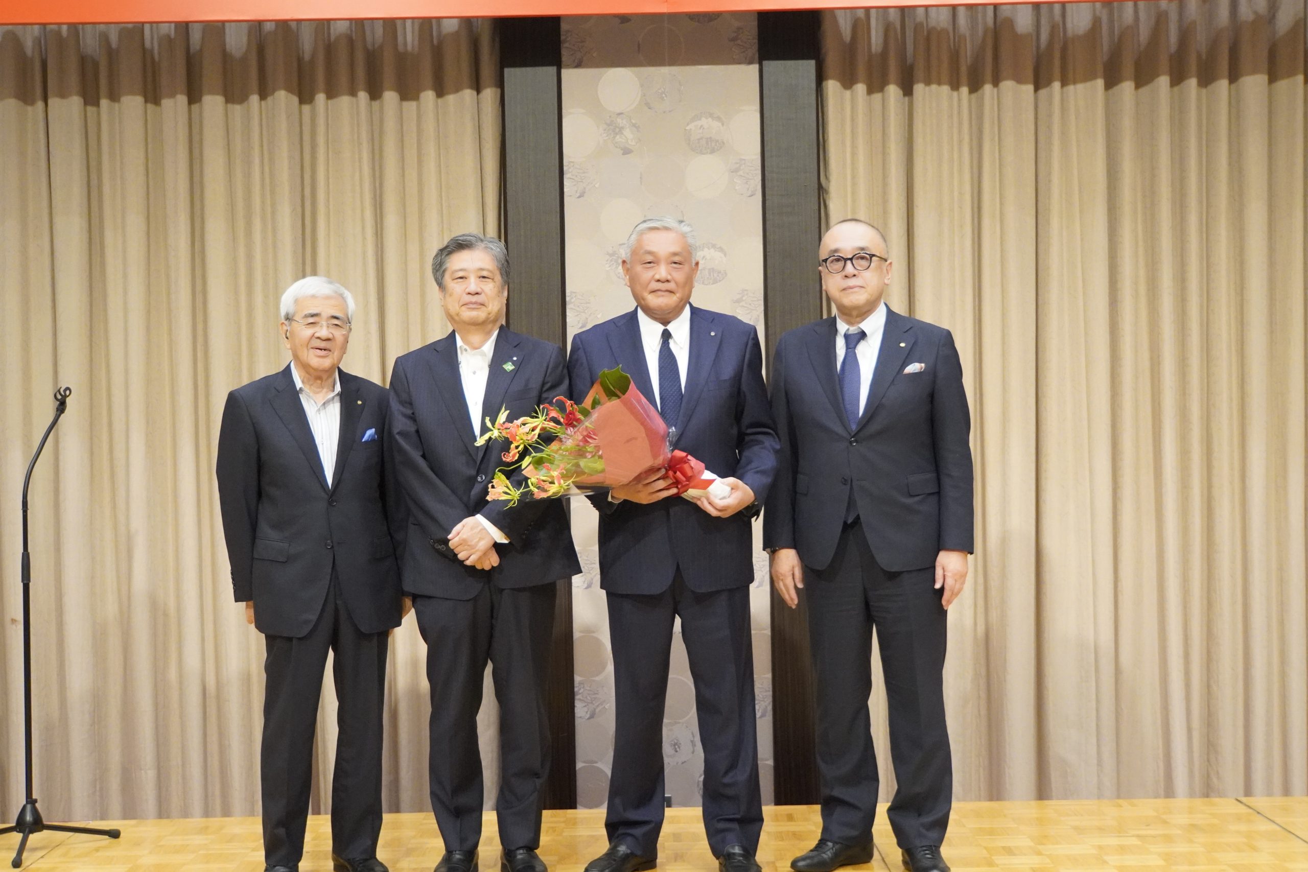9月25日(木)午後6時30分より、岡山プラザホテルにて、本年度第1回目の新会員歓迎会が開催されました。冒頭、齋藤信也会長より「新会員と既存会員がしっかりと親睦を深めてほしい」とのご挨拶がありました。続いて、新会員4名による自己紹介が行われ、大西直前会長の乾杯のご発声をもって、和やかな宴が始まりました。