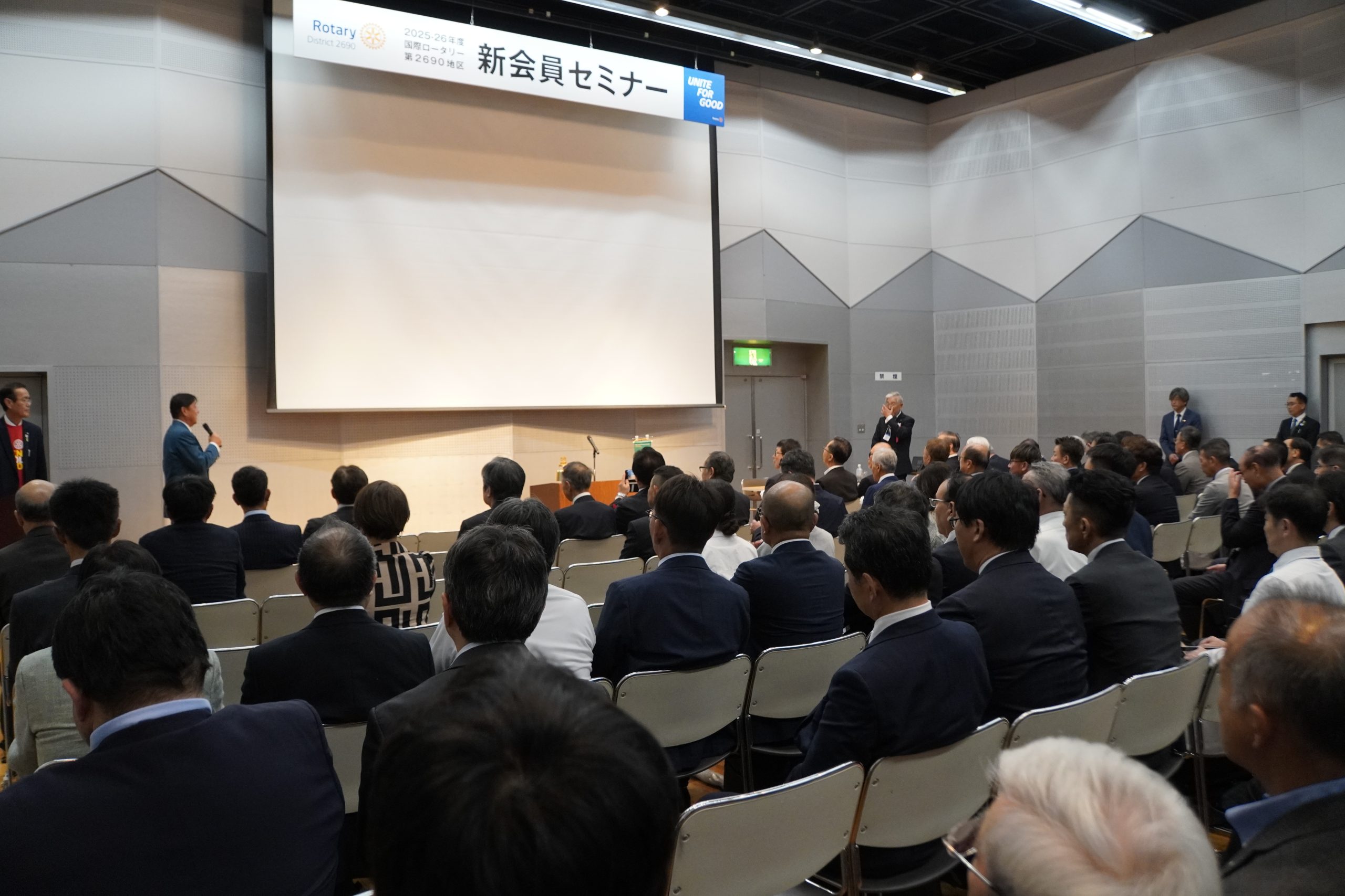 4日(土)は、齋藤会長、幹事の平井、また岡山東RCの2027-28年度地区大会実行委員会メンバーの現地視察も兼ねての参加となりました。当日のプログラムは、新会員対象の「新会員セミナー」、続いて「地区指導者育成・新会員合同セミナー」にて「ポリオを知り行動しよう」と題し、医学博士の尾身茂氏の基調講演、「ガバナー補佐・会長・幹事会」と続き、初日の結びとして「歓迎晩餐会」が平井鳥取県知事、基調講演の講師 尾身茂氏、佐藤芳郎国際ロータリー直前理事をお招きし、盛会のもと開催されました。