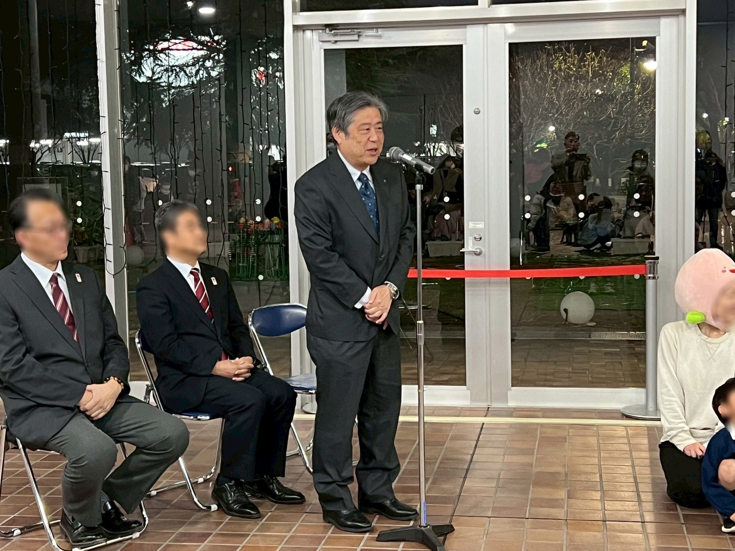 多くの来場者が集まった開会式で齋藤会長もご挨拶をさせていただき、カウントダウンでイルミネーションの点灯がされました。大きな歓声と拍手が沸き起こり、きれいなイルミネーションの光に来場者の笑顔がキラキラと光っていました。