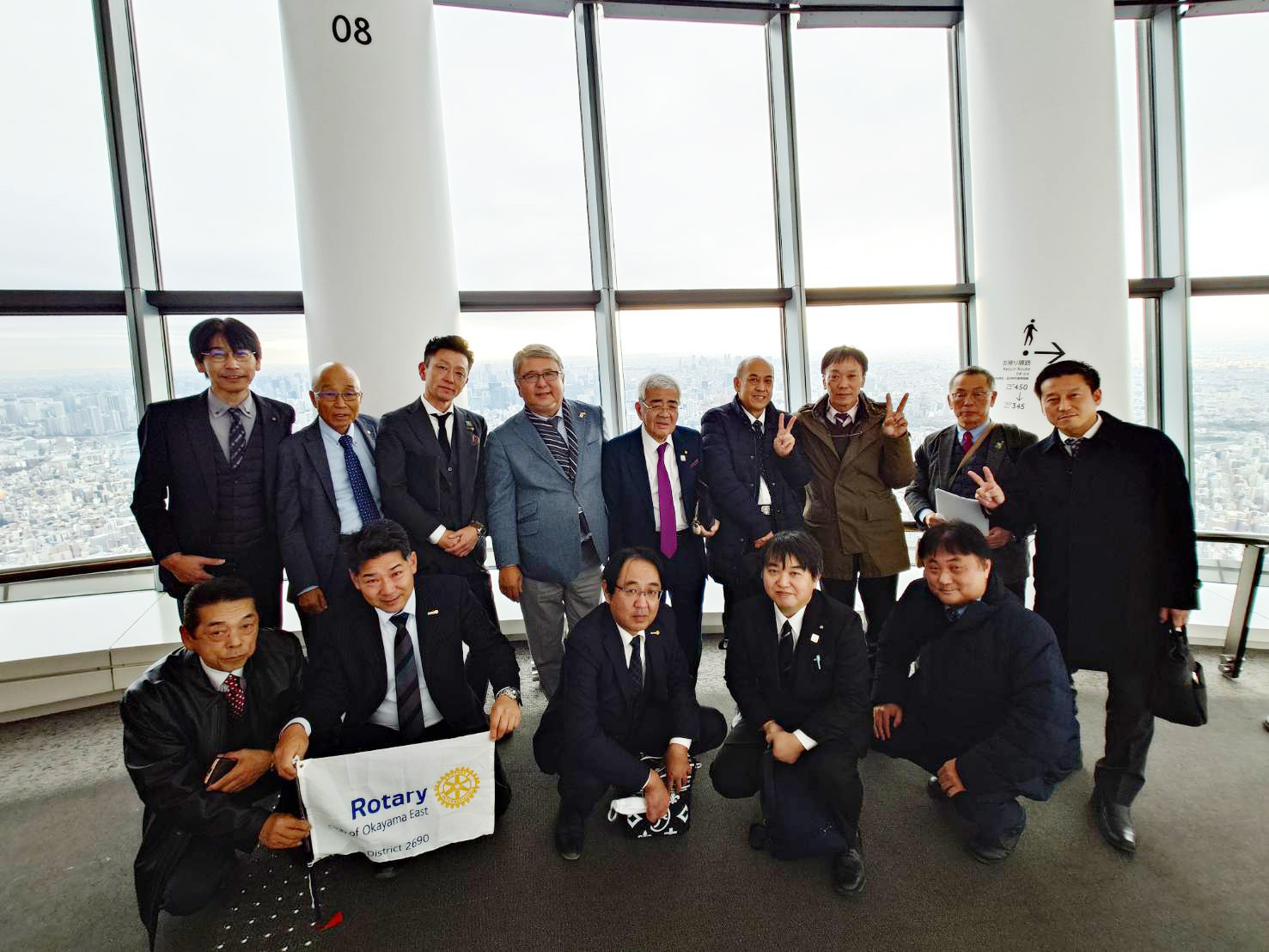 二日目の明治神宮正式参拝では、岡山東RCのさらなる発展と会員各位の健康・幸福を祈願し、明治天皇御製の一首を拝聴した後、東京屈指のパワースポットである境内を散策いたしました。続いて訪れた東京スカイツリーでは、高さ450mからの眺望を楽しみ、改めて東京が世界有数の都市であることを実感いたしました。