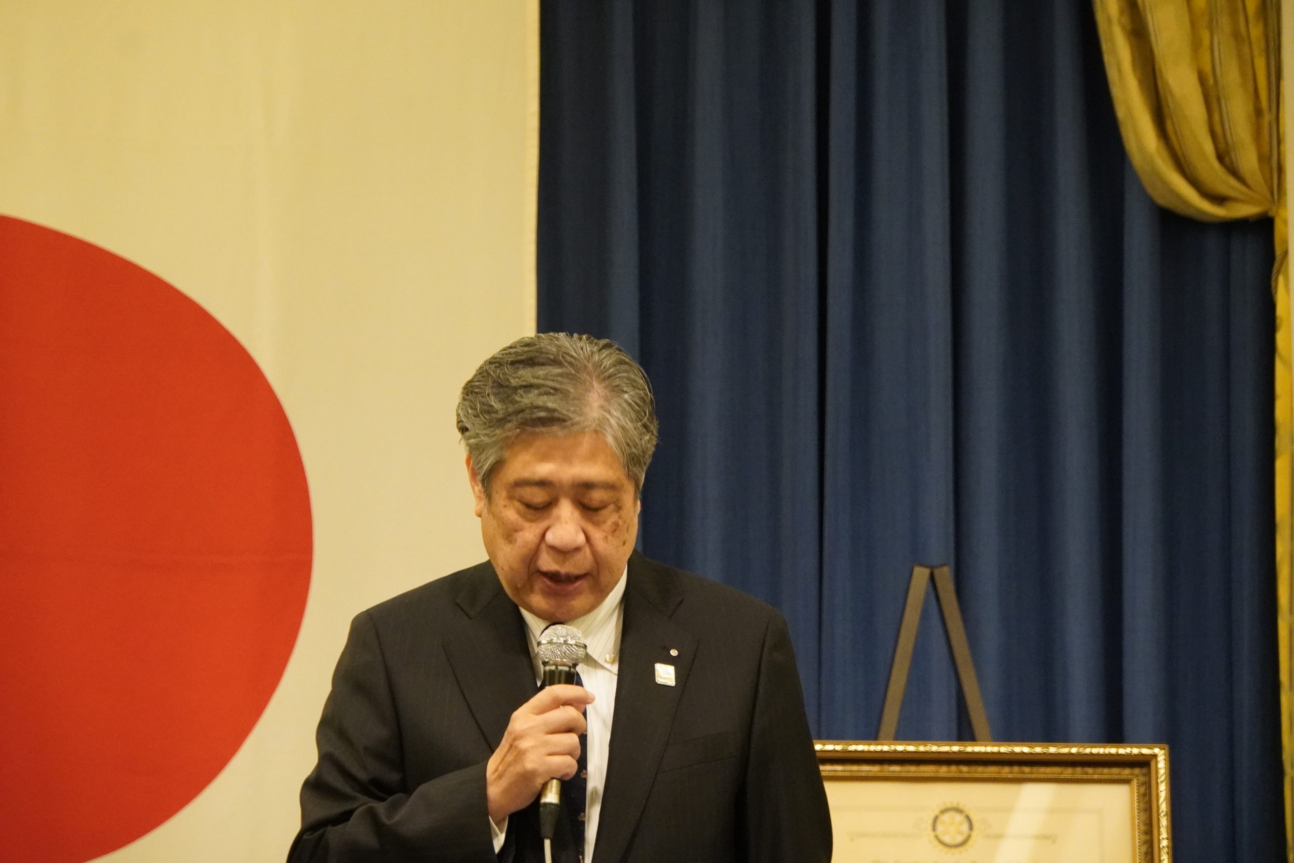 齋藤信也会長の挨拶に続き、松井浩明ガバナー補佐よりご挨拶をいただき、会は和やかに始まりました。まず会長よりクラブ全体の活動報告が行われ、続いて平井幹事よりクラブの概況について説明があ