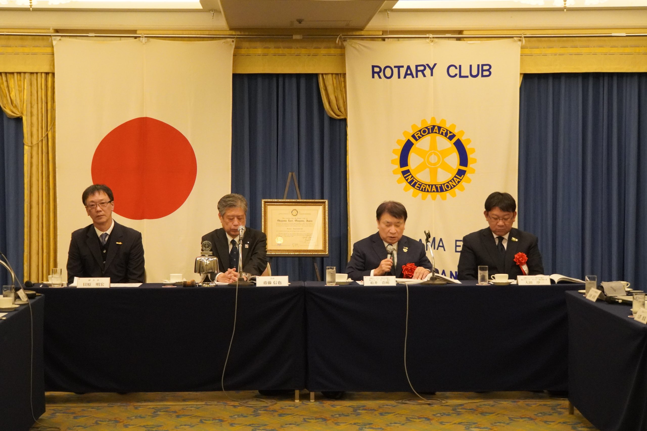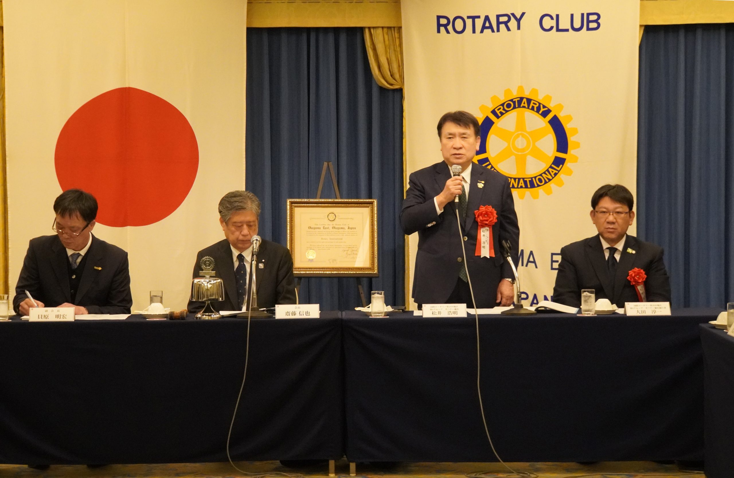 2月26日(木)午後6時30分より、岡山プラザホテル4階「烏城の間(南)」にて、第2690地区第9グループの松井浩明ガバナー補佐と随行の大田淳一様をお迎えし、第5回クラブ協議会を開催いたしました。