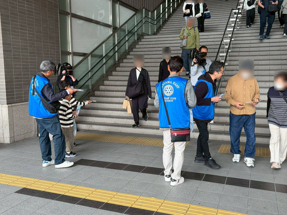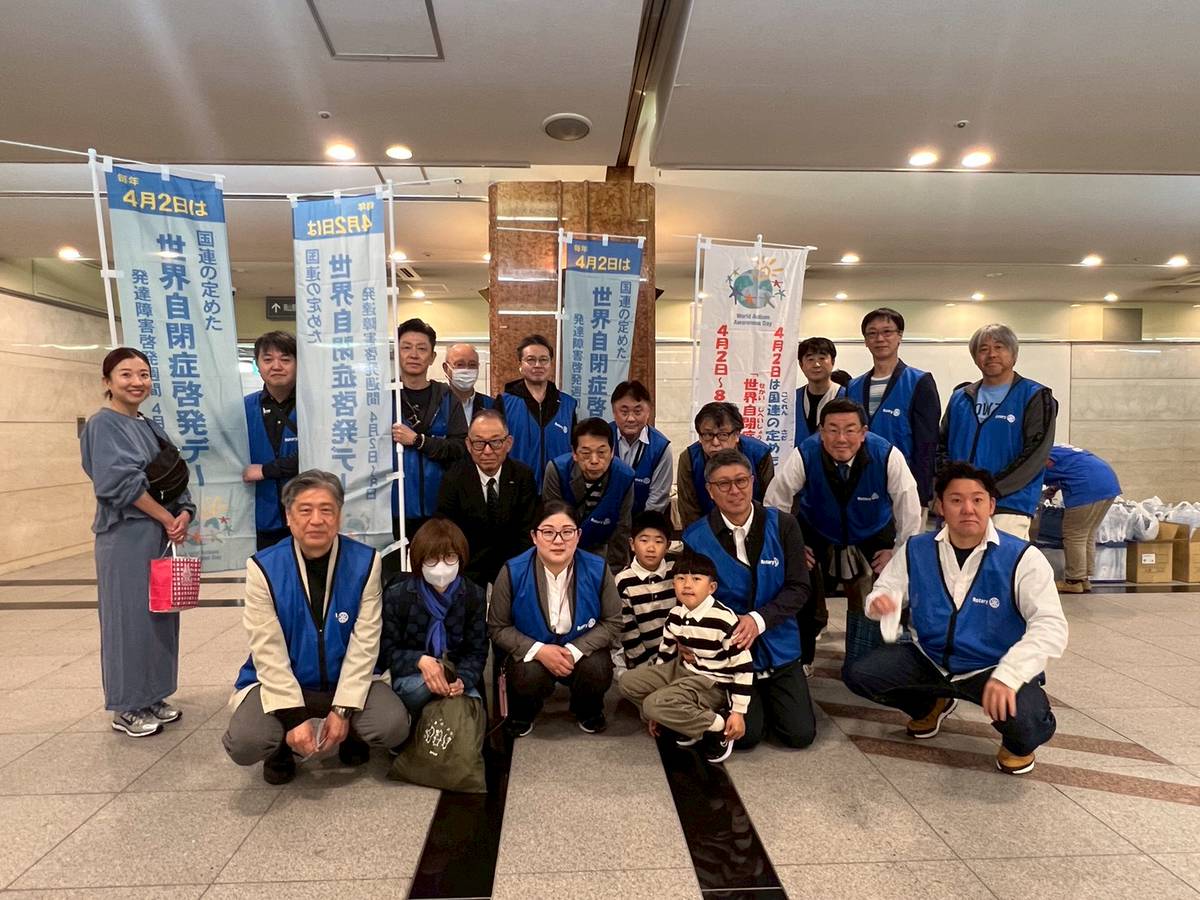 3 月29日(日)に社会奉仕活動として“世界自閉症啓発デー”に合わせて「自閉症街頭啓発活動」に参加させていただきました。当日は岡山県発達障害児・者の親連携協議会(DDネット岡山)と連携として、岡山県自閉症協会の皆様をはじめ、岡山県担当課、岡山市発達障害者支援センター、岡山県発達障害者支援センター、ノートルダム清心女子大学、親の会、ボランティア募集の学生さん、SNSを通じて参加された方々、当事者の方々、そして岡山東RC20名が加わり、総勢70名を超える大きな活動となり、岡山駅東口エスカレーター下広場と東西連絡通路先のタクシー乗り場付近にて啓発のリーフレットとポケットティッシュを街頭にて配布しました。1時間ほどで2000セットを配布し、“世界自閉症啓発デー”の認知アップと自閉症をはじめとする発達障害への理解促進、共生社会の実現を目指す奉仕活動になりました。齋藤会長をはじめ、ご参加いただいた方々に深く感謝いたします。ご協力ありがとうございました。