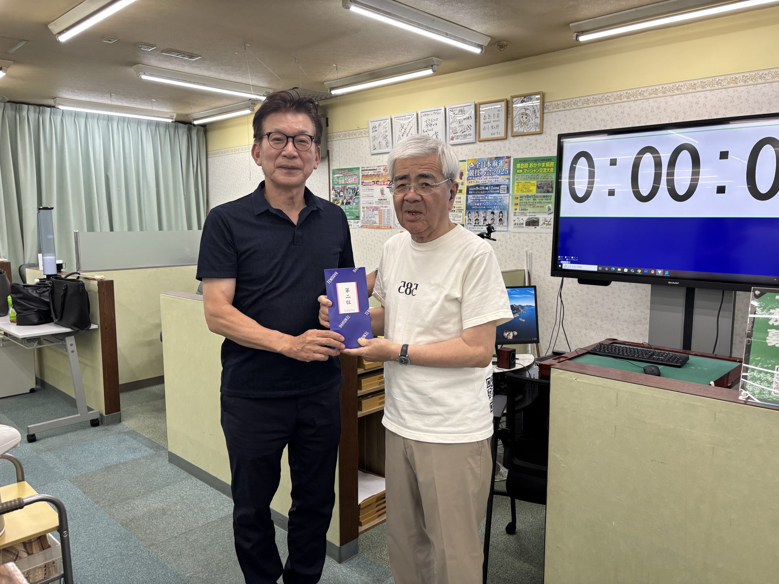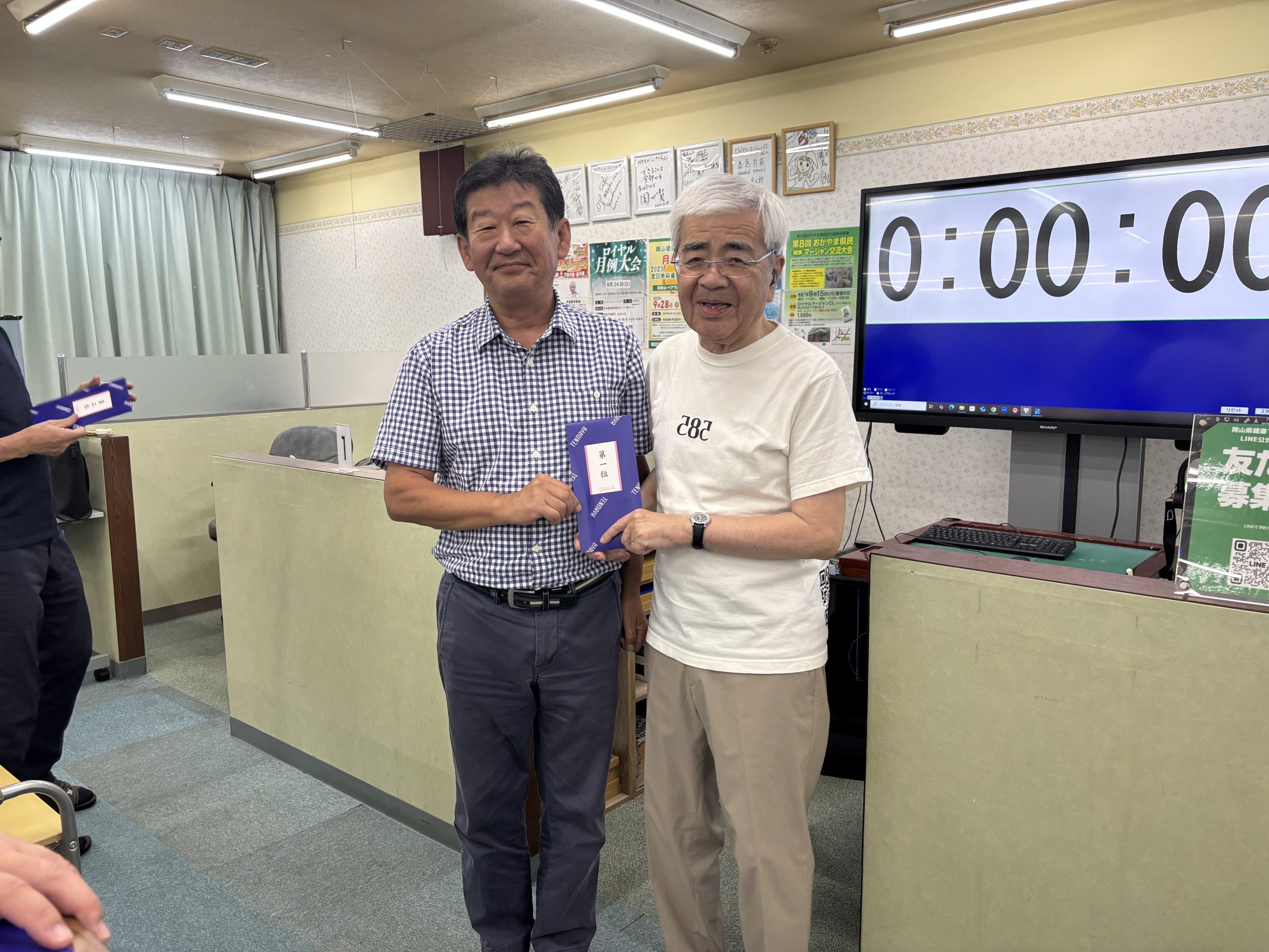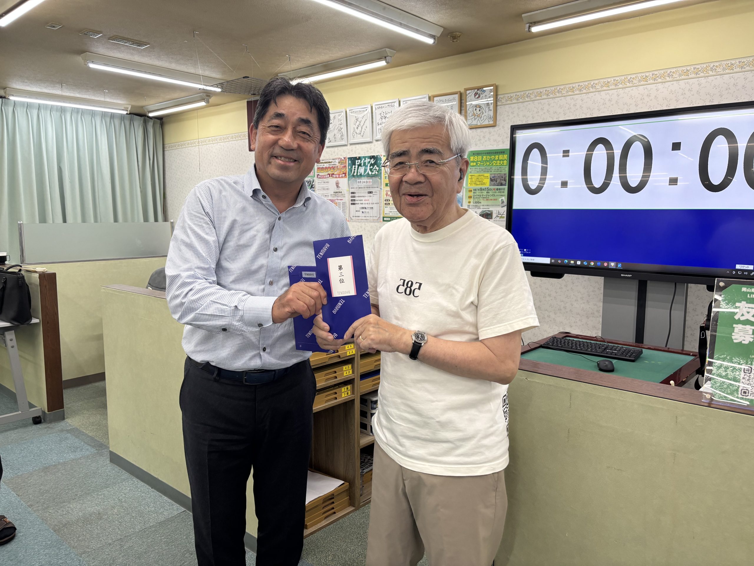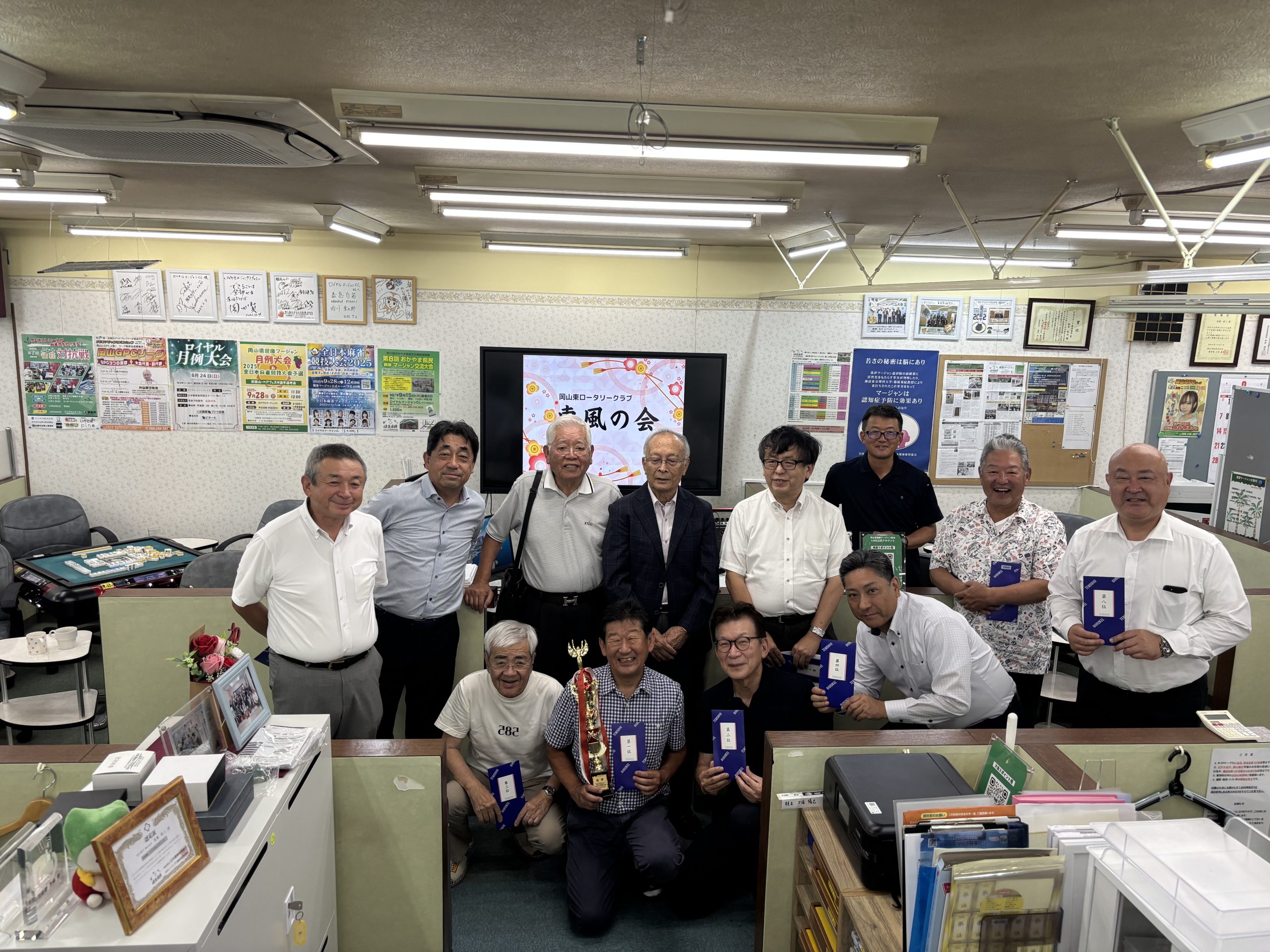 9月18日午後6時30分から、ロイヤルマージャンCLにて2025-26年度第1回の麻雀同好会「東風の会」競技会が12名の出席で開催されました。