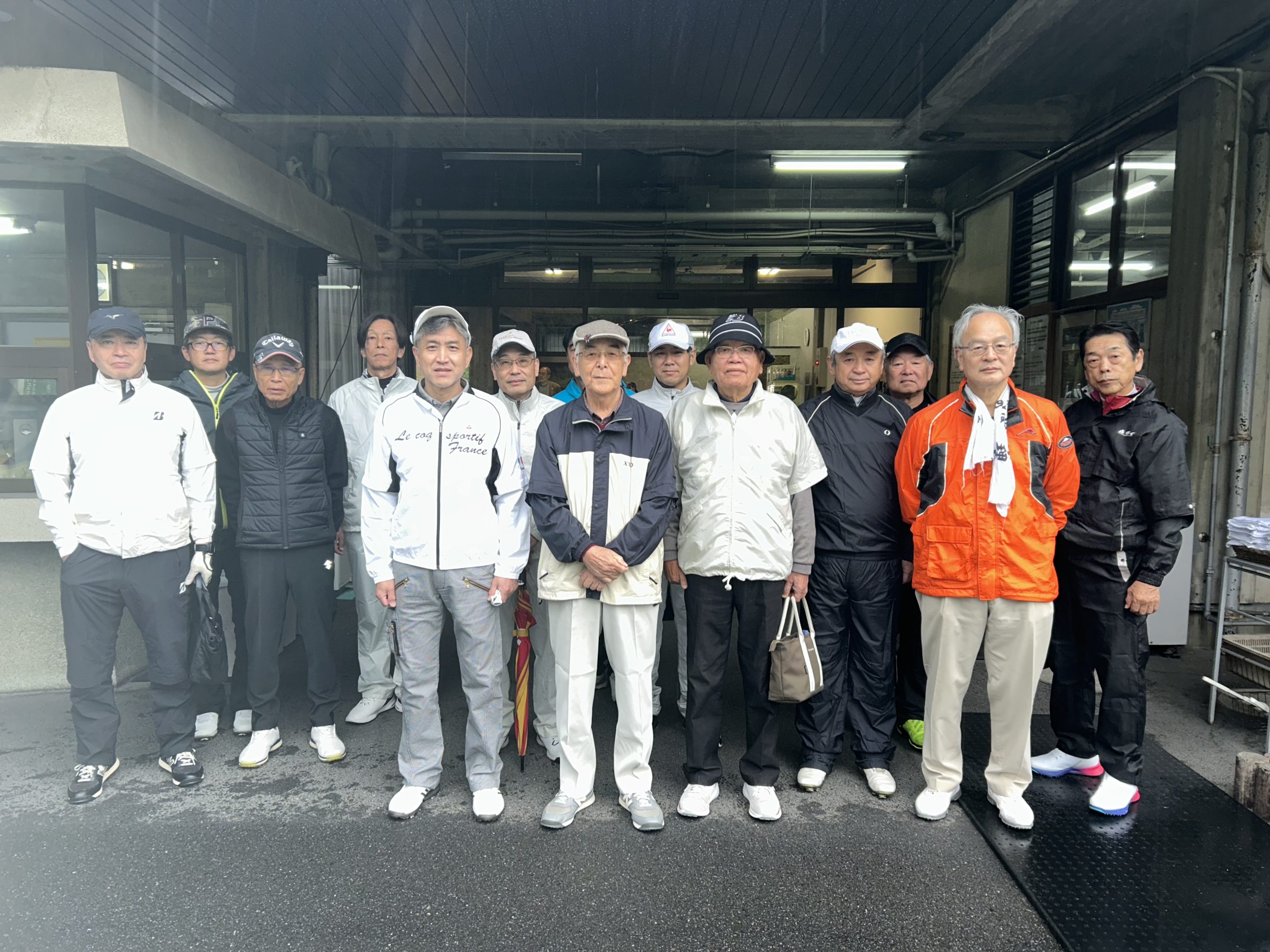 11月9日(日)ゴルフ同好会第4回例会が総勢14名参加により岡山カントリークラブ桃の郷コースにて開催されました。まず、荒川同好会会長のご挨拶をいただき、午前8時30分よりスタート。朝から大雨で、昼から雨も上がりましたが、厳しいコンディションの中でのゴルフでしたが、皆様無事にプレーを終えることができました。優勝は菅野正則会員でした。各賞に入賞された方、おめでとうございました。