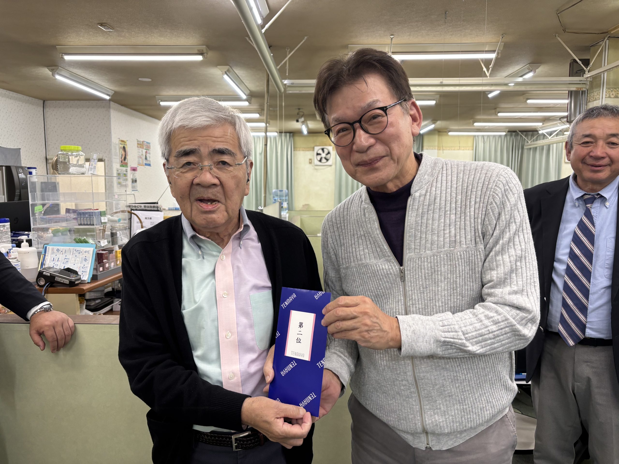 11月13日(木)午後6時30分から、ロイヤルマージャンCLにて、第2回の麻雀同好会「東風の会」競技会が15名の出席で開催されました。8位までが優勝チャンスのある中、優勝は守り勝った大塚学会員、2位は日名一誠会員(300点差)、3位は狩谷浩範同好会幹事(2,400点差)となりました。第3回競技会2026年1月29日(木)午後6時30分から、ロイヤルマージャンCLで開催されます。