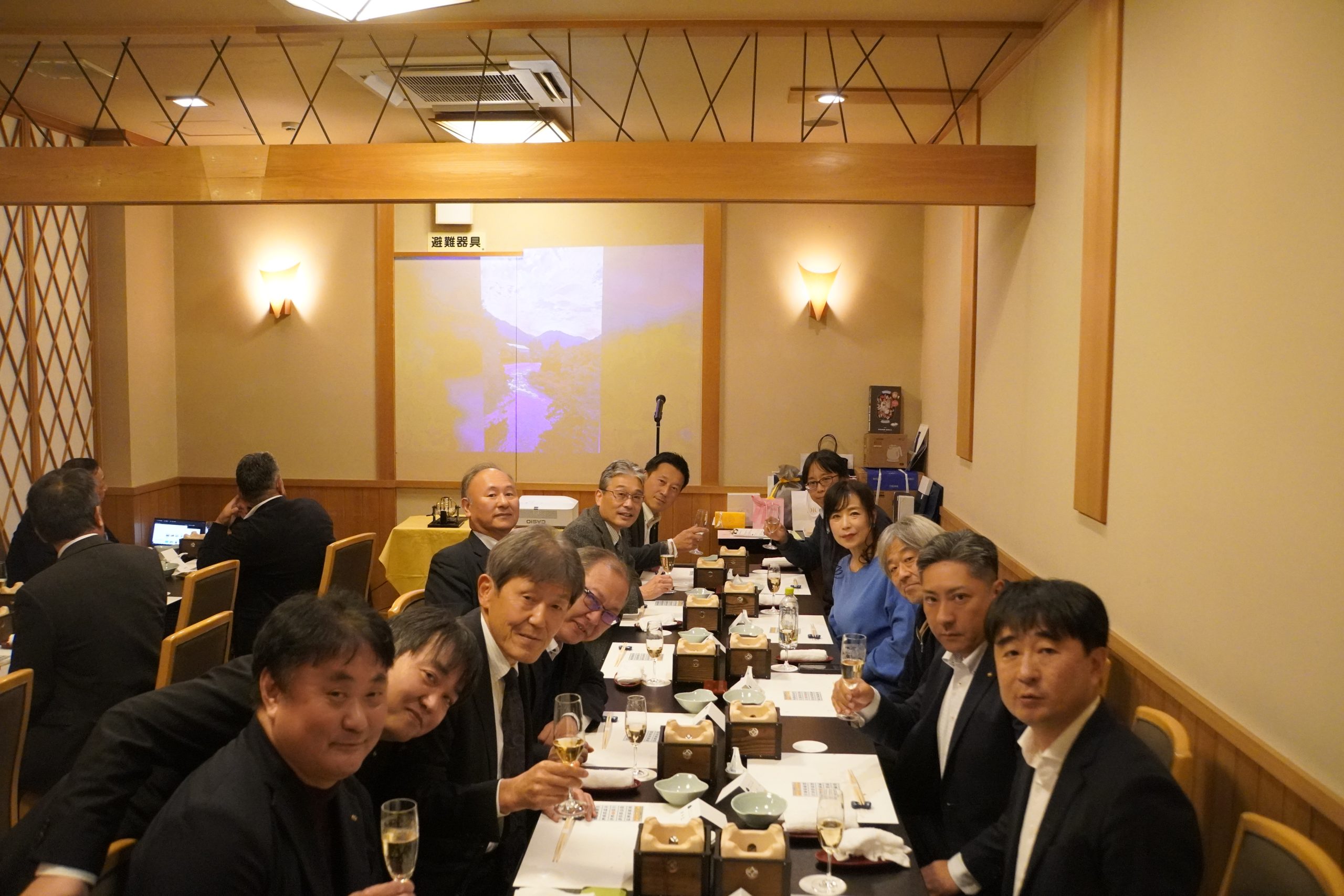 12月8日(月)午後6時30分より写真同好会写友「輪影」の忘年会が、新顧問の蜂谷秀人先生をお招きして、岡山浜作にて開催されました。冒頭、藤井一也 写友「輪影」会長よりご挨拶があり、鳥居パストガバナーの乾杯のご発声をもって、和やかな宴が始まりました。 会の途中では、今年9月に開催された第35回写友「輪影」展の出展作品について、蜂谷先生より一作ずつ丁寧な講評をいただきました。その後の最終選考により、第一席は諸國眞太郎パスト会長の「通勤列車」でした。「蜂谷賞」は忘年会出席者の中から、奥野一三副幹事の「鶴と富士」となりました。さらに恒例のビンゴ大会も大いに盛り上がり、今後も表現力を磨くとともに皆で親睦を深めることを誓い合う忘年会となりました。